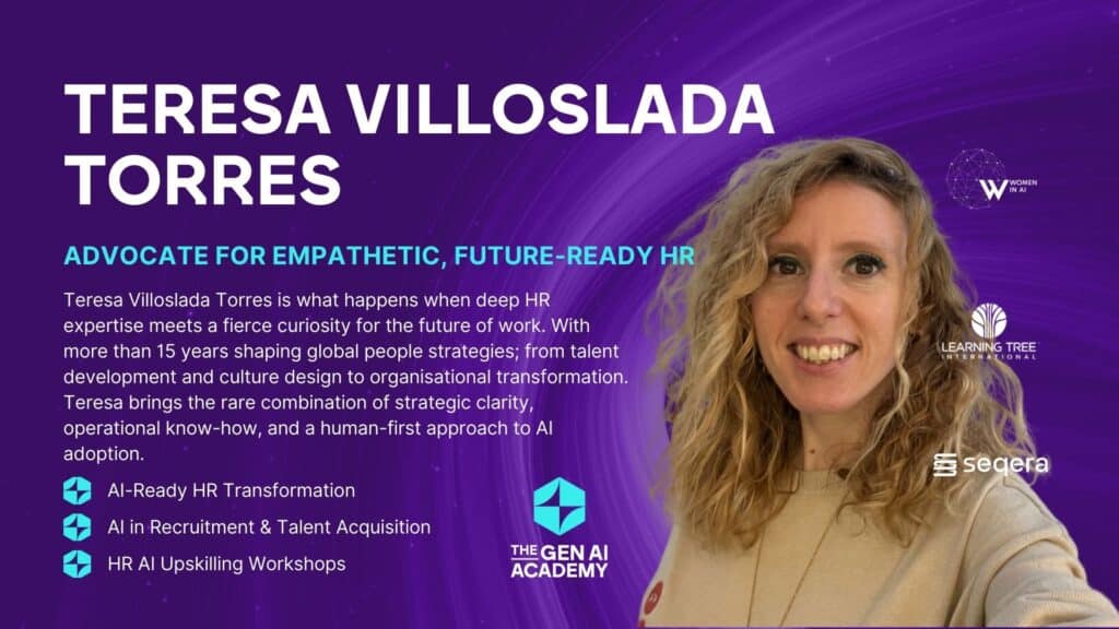 عملت في إسبانيا والمملكة المتحدة وأوروبا بشكل عام، حيث تعاونت مع قادة من أجل بناء مؤسسات عالية الأداء وقائمة على القيم، لا يقتصر دورها على مجرد التكيف مع التغيرات التكنولوجية، بل تنمو من خلالها. تتخصص تيريزا في دمج الذكاء الاصطناعي في وظائف الموارد البشرية بطرق تحمي الإنسانية، وترفع القدرات، وتقوي جوهر الثقافة المؤسسية. سواء كان ذلك من خلال تحديد المواهب المدعومة بالذكاء الاصطناعي، أو ذكاء المهارات، أو تحسين التوظيف، أو إعادة كتابة تجربة الموظفين لعصر معزز، فهي تساعد فرق الموارد البشرية على الانتقال من حالة عدم اليقين إلى الثقة.