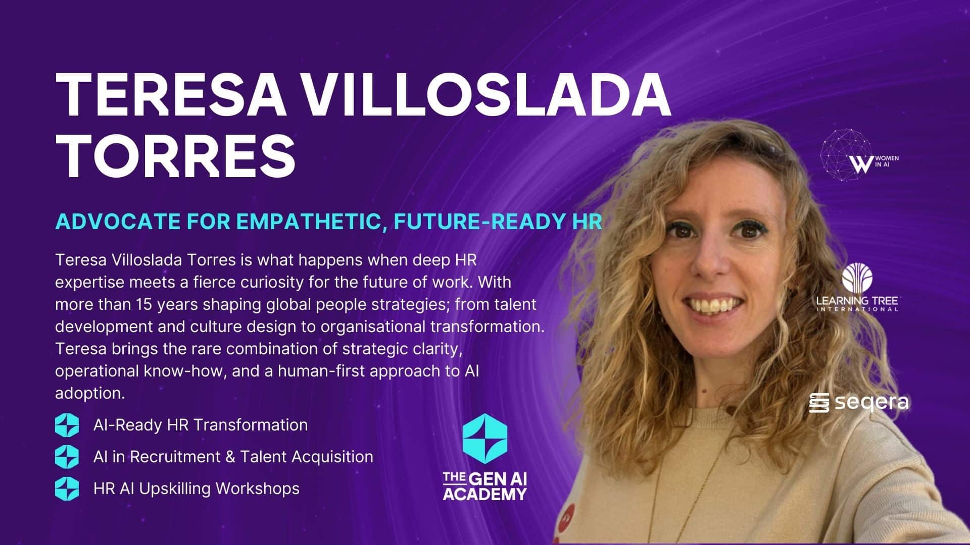 تيريزا فيلوسلادا توريس هي مثال على ما يحدث عندما تلتقي الخبرة العميقة في مجال الموارد البشرية بفضول شديد لمستقبل العمل. بفضل خبرتها التي تزيد عن 10 سنوات في مجال الأعمال التقنية، ساهمت تيريزا في تطوير المواهب وتصميم الثقافة والتحول التنظيمي. تتمتع تيريزا بمزيج نادر من الوضوح الاستراتيجي والمعرفة العملية والنهج الذي يضع الإنسان في المقام الأول عند اعتماد الذكاء الاصطناعي.